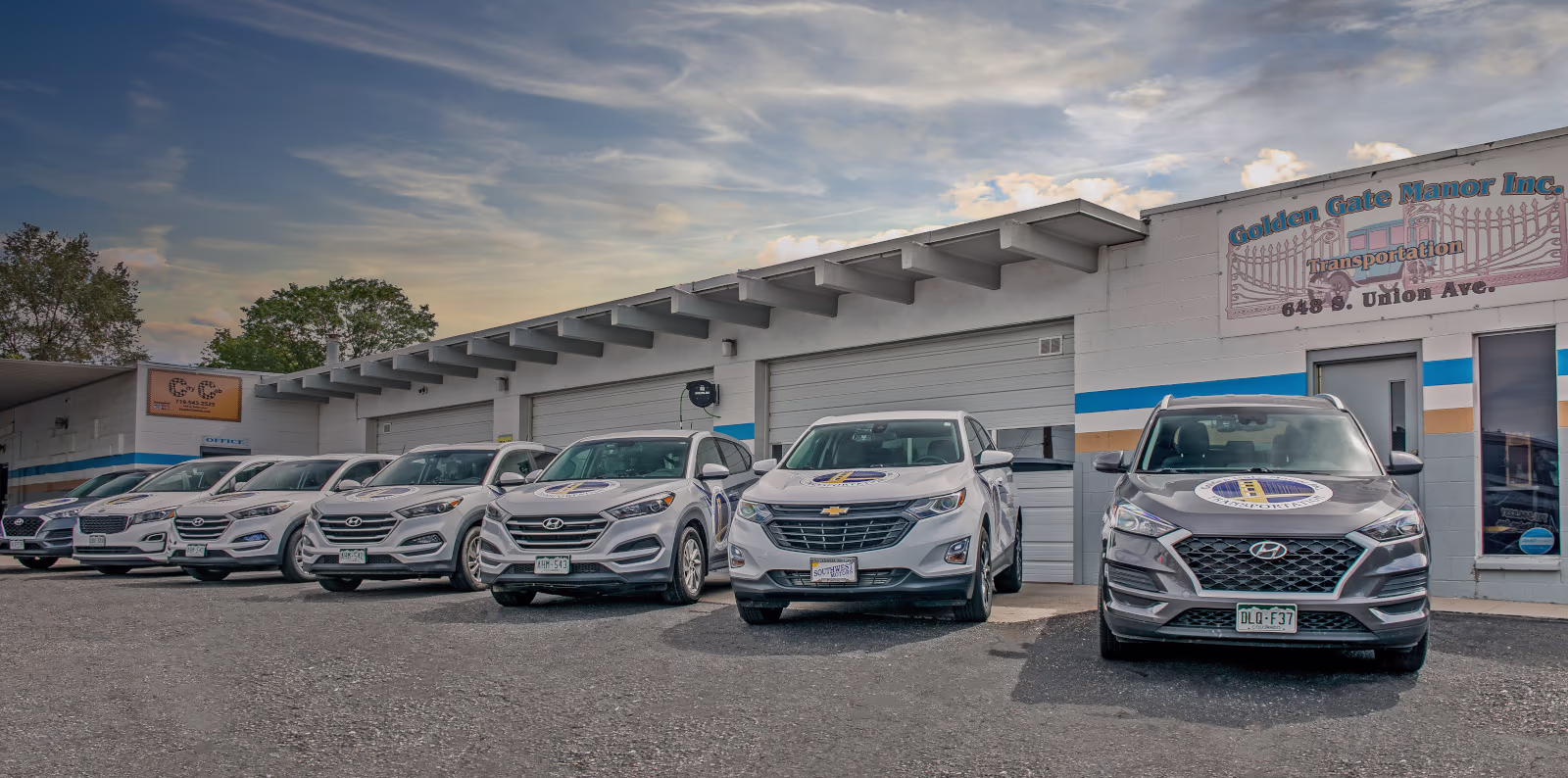 Line-up of Golden Gate Manor Inc cars in Pueblo Colorado